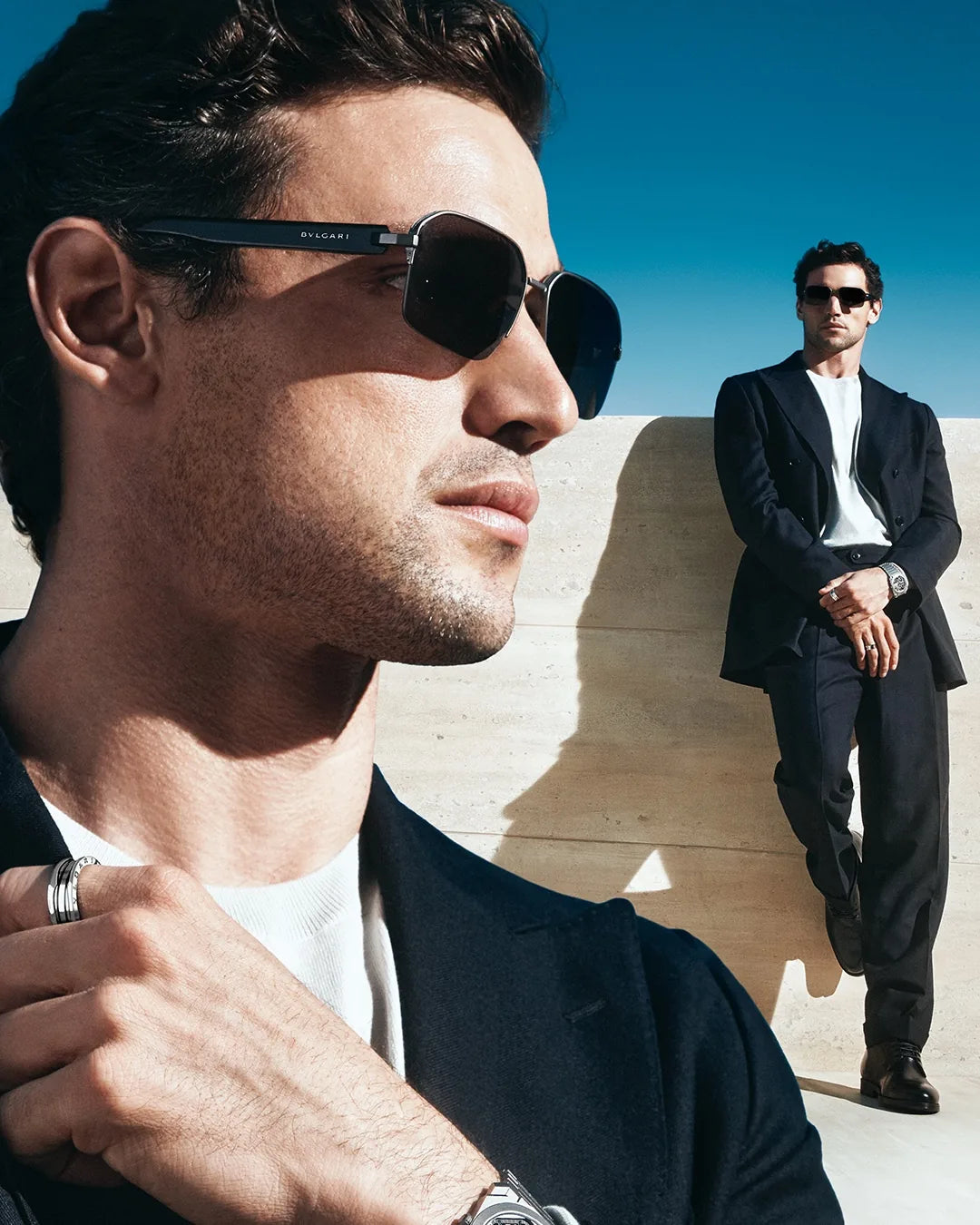 Ogni modello riflette il DNA della Maison: linee nette, geometrie decise, dettagli in metallo che richiamano l’estetica iconica dei gioielli Bulgari. È uno stile in cui la forza maschile incontra un lusso elegante, calibrato e straordinariamente moderno.